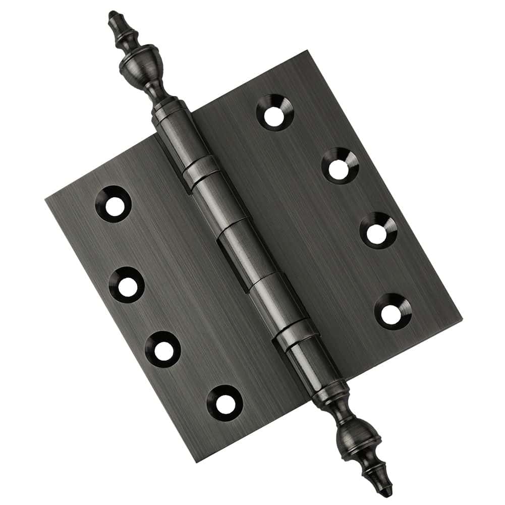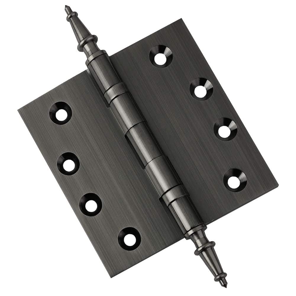 Each pair of 4.5 x 4.5 Inch Pewter Door Hinges Comes with 12 #10 wood screws. Should you choose finials, then 4 finials will be included.