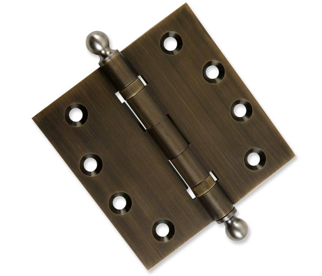 This 4.5 x 4.5 Inch Embassy® Solid Brass Ball-Bearing Hinges in antique brass finish is machined to exact specifications, giving you a high-quality hinge that provides long-lasting strength and performance. For both standard and heavy doors, ball-bearing hinges offer superior support, smoother operation, and longer-lasting performance compared to standard hinges.