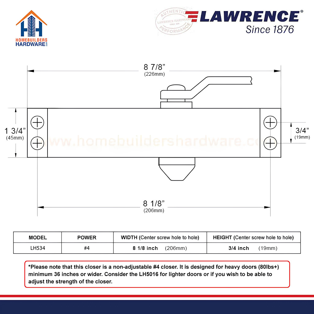 Medium Duty Aluminum Door Closer, Lawrence Hardware LH534 EMBASSY® Series
