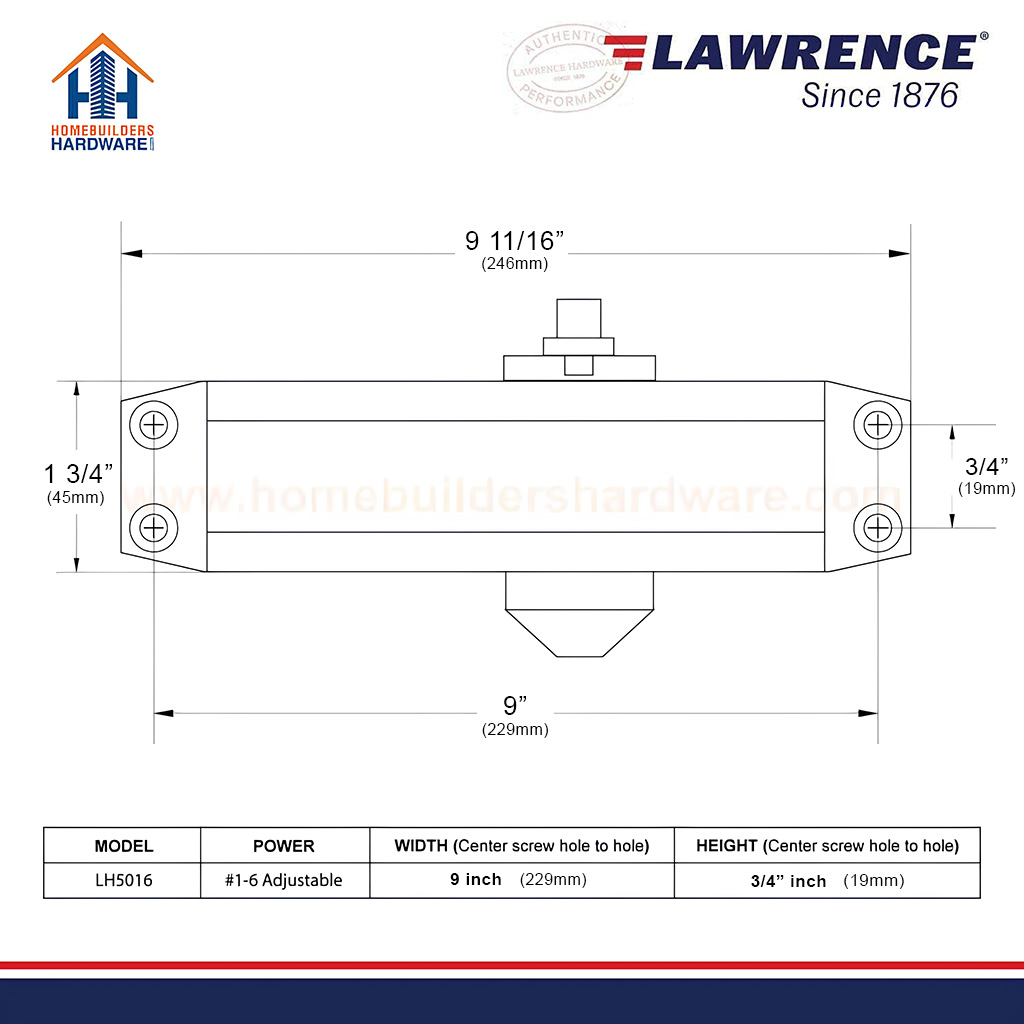 Door Closer, Medium/Heavy Duty Commercial, Lawrence Hardware LH5016 EMBASSY® Series