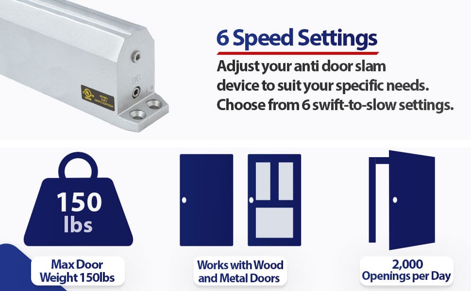 - SPRING FORWARD, EASE BACK: The commercial-grade arm won’t interfere with opening yet closes doors slowly enough to allow graceful entrance and exit.