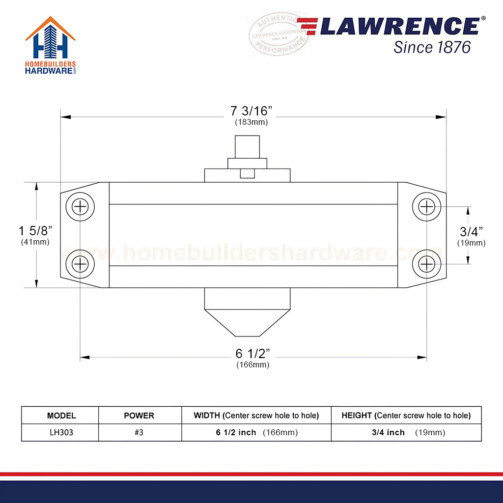 Door Closer, Standard Duty Cast Aluminum Adjustable Commercial, Lawrence Hardware LH303 EMBASSY® Series