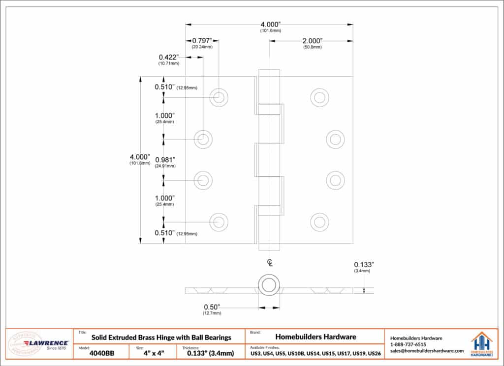 - Interchangeable: Manufactured to precise ANSI/BHMA specifications. These specs ensure interchangeability with other Template Hinges for easy replacement.